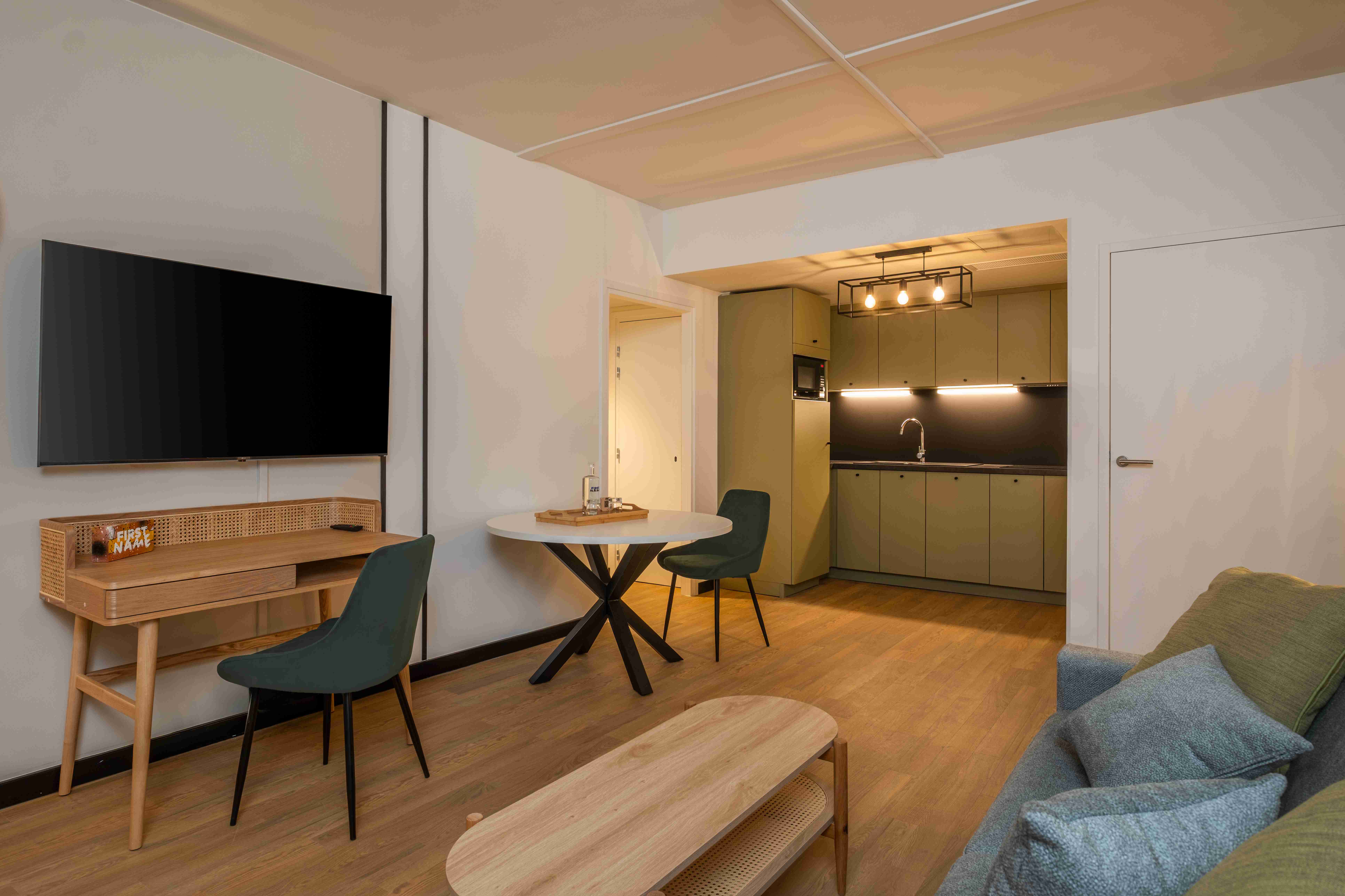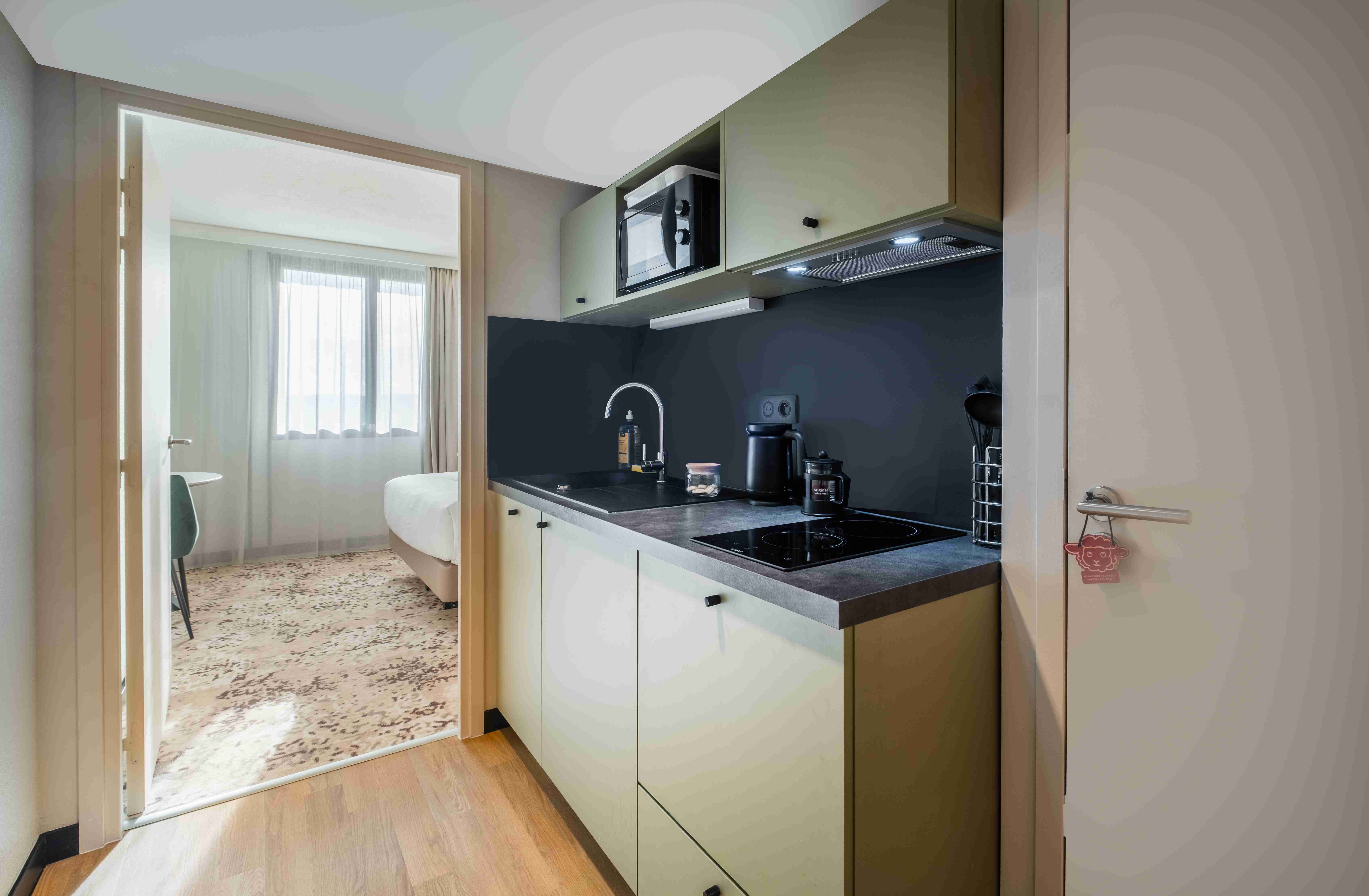 Con su dormitorio independiente, su cocina totalmente equipada y su salón con sofá cama, este es el lugar perfecto para estancias prolongadas, tanto si viajas en pareja, en familia o por negocios. Aquí, deshaz las maletas para relajarte, socializar, trabajar e incluso darte un capricho: desayuno gourmet, servicio de lavandería, gimnasio y e-sports. Para darte un capricho o desconectar, acércate a Le Bada, el bar-restaurante del hotel… o a nuestro bar clandestino, escondido tras una puerta secreta custodiada por Badaboum.