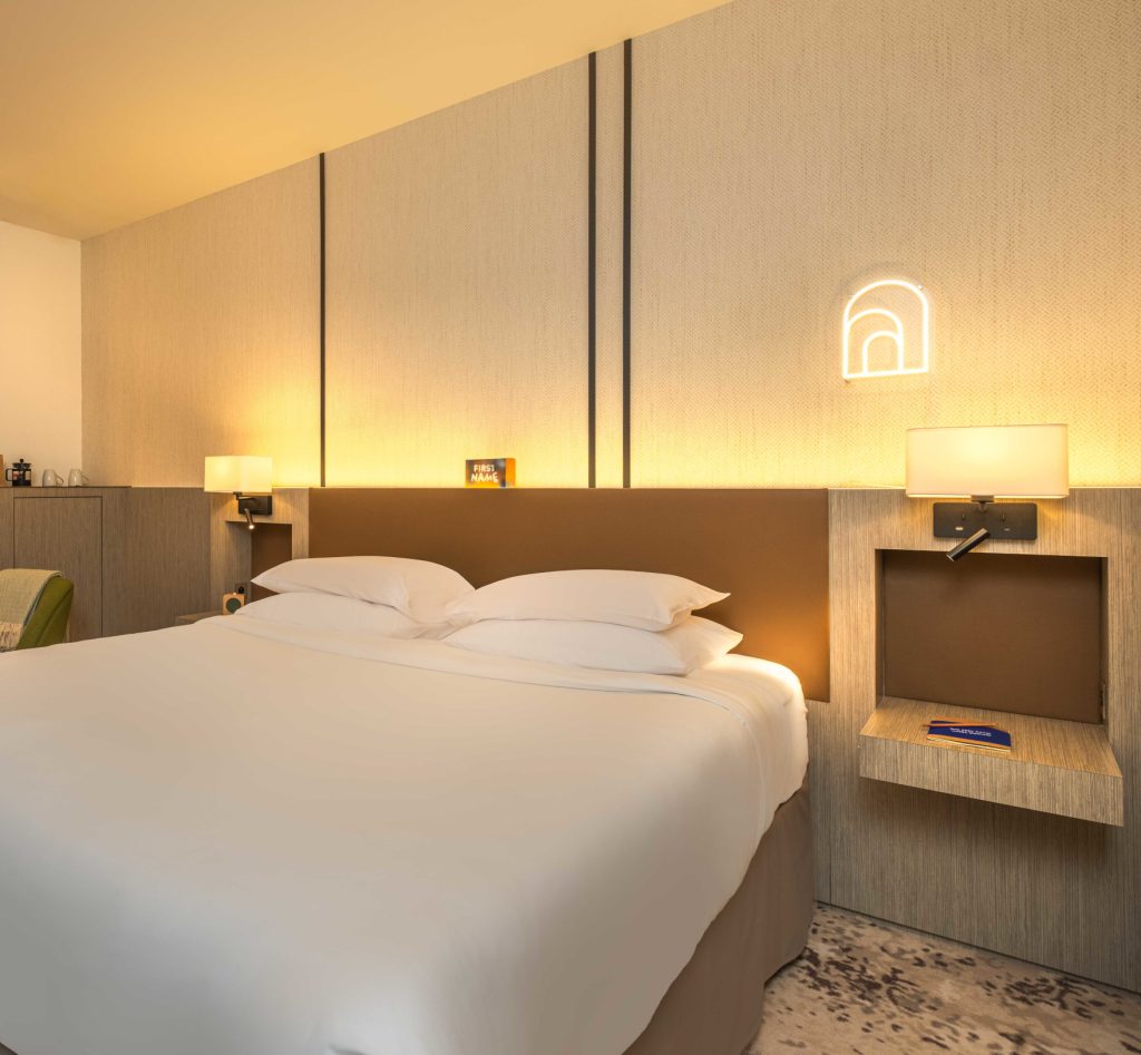 Trouvez la paix dans notre chambre bien aménagée. Cette chambre de luxe est conçue pour un maximum de confort et dispose d’un lit king-size avec une literie haut de gamme fabriquée en France.